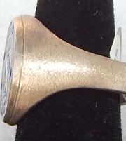 WWII 10th Mountain Division Ring. Heavyweight construction. The front has a likeness of the patch with CLIMB FOR GLORY below. Recessed details. Big size. Has been worn.