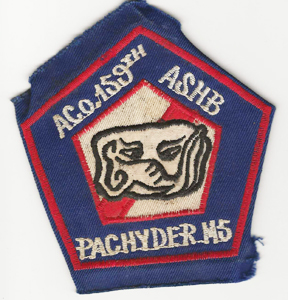 Vietnam A Company 159th Assault Support Helicopter Battalion PACHYDERMS Pocket Patch. Vietnamese machine embroidered. Has the green sandbag like backing. Uniform removed.