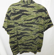 Vietnam BDQ / Ranger Advisors Tiger Stripe Camo Set. Late war, lightweight caorse cotton body. Shirt has been tailored to a short sleeve. On the left sleeve is a Vietnamese silk woven ranger shoulder patch with a US embroidered Ranger tab. On the right sleeve is a Vietnamese made 1st Cav patch with a US made subdued RANGER tab. Above the tab is a Vietnamese made scroll for the Military Region 4 Vietnamese Ranger Commad. Have not seen another example like this tab, it is killer. Above the left pocket are Vietnamese machine embroidered basic airborne jump wings and a CIB. On the collar are emb. on twill captain rank and artillery bos. There are two chest pockets with exposed buttons. Size is not marked but measures out to about a size 46. The trousers are cut out of same material. They are cut in a six pocket style. Missing some of the buttons on the pockets. There is no size in the trousers but they measure out to about a 36 waist. Both show wear but are still in great shape. It's a shame the vet took his name off of these, but still a killer set no matter what. VPCR