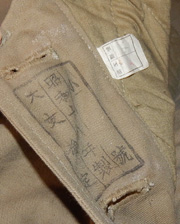WWII New Old Stock Japanese Army Tanker Overalls. Heavyweight khaki cotton body, that is padded for reenforcing. Has one chest pocket and two knee pockets. This pair has never even been on a human body. No stamps that we could find. About a medium size.