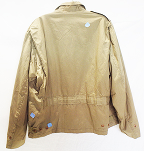 WWII New Old Stock Large Size M41 Field Jacket. The OD cotton/wool body is in perfect condition with no stains or holes of any type. The TALON zipper is perfect condition. Would be hard to find any M41 in this good of condition. Jacket measures shoulder to shoulder 21 inches, front chest size 25 inches, sleeve length 25 inches and top of the neck to the base of the jacket is 28 inches. Still has all the cutter tags attached to the body. You could not upgrade this jacket.