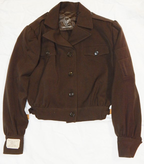 WWII AAF Nurses Flying Jacket L-1 NOS Jacket. Chocolate gaberdine body. Two chest pockets, and one sleeve pocket. Still has the cutter tags and the issue tag on the sleeve. Excellent condition, just shows some minor storage dust. We have had a lot of the khaki versions, but this is the first on the gab. Would be hard to upgrade. PUR