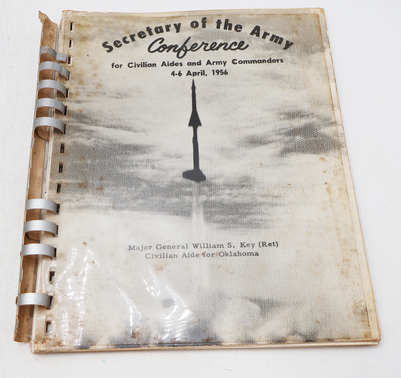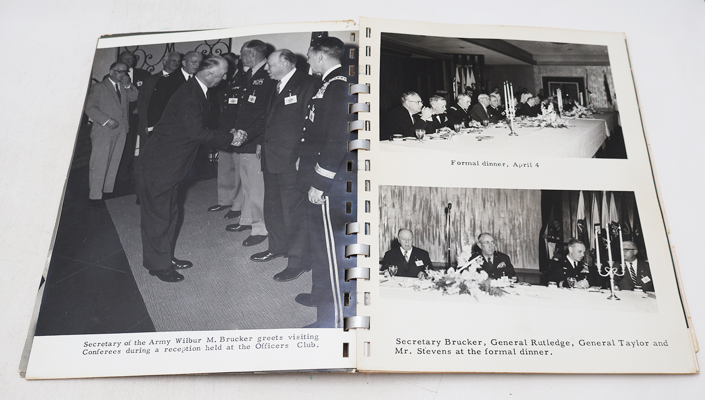 Secretary of the Army Conference For Civilian Aides and Army Commanders 4-6 April, 1956 by Major General William S. Key. Hardbound. Dated 1956. 22 pages. Lots of great illustrations and photos. Heavy Wear to the cover, but pages and binding are strong. No torn or missing pages.