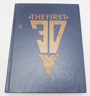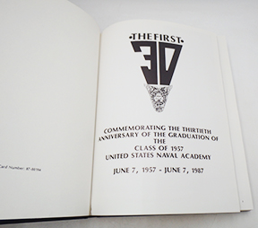 US Naval Academy Lucky Bag "The First 30" 1957 Yearbook. In good condition with just some minor wear around the edge of the cover. Good binding, clean body and unmarked pages. 408 pages with B/W photography. Published in 1987 to recognize the 30th anniversary of the graduating class.