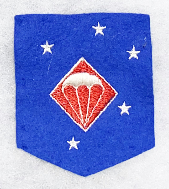 WWII US Marine Corps 1st MAC Paratroops Shoulder Patch. Three and a quarter inches tall. Machine embroidered on felt. Unused.