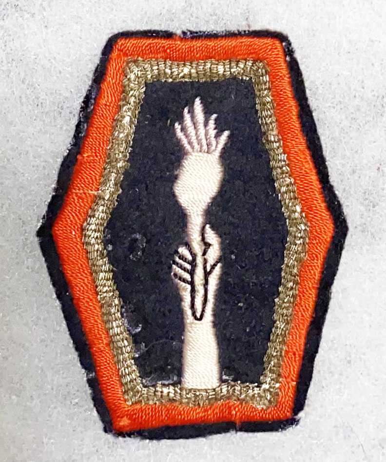 WWII - Occupation 442nd Regimental Combat Team Bullion Patch. Blue velvet background with hand embroidered details and a heavy silver bullion border. German made. Unused. The photos do not do this patch justice.