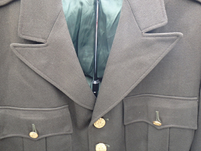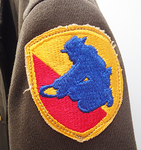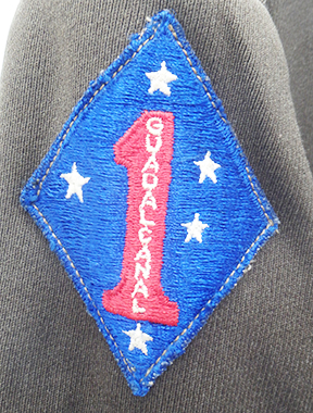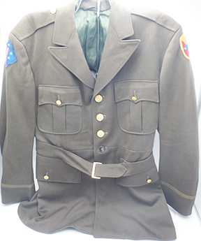 WWII US Army 49th Infantry Division and 1st Marine Division Officers Service Coat. Has 49th Infantry Division left sleeve and 1st Marine Division on the right. This indicates the officer was in the Marine Corps before joining the Army. The wool belt is in good condition. Jacket is in very good condition. Jacket measures shoulder to shoulder 19 inches, front chest size 21 inches, sleeve length 24 inches and top of the neck to the base of the jacket is 30 inches.
