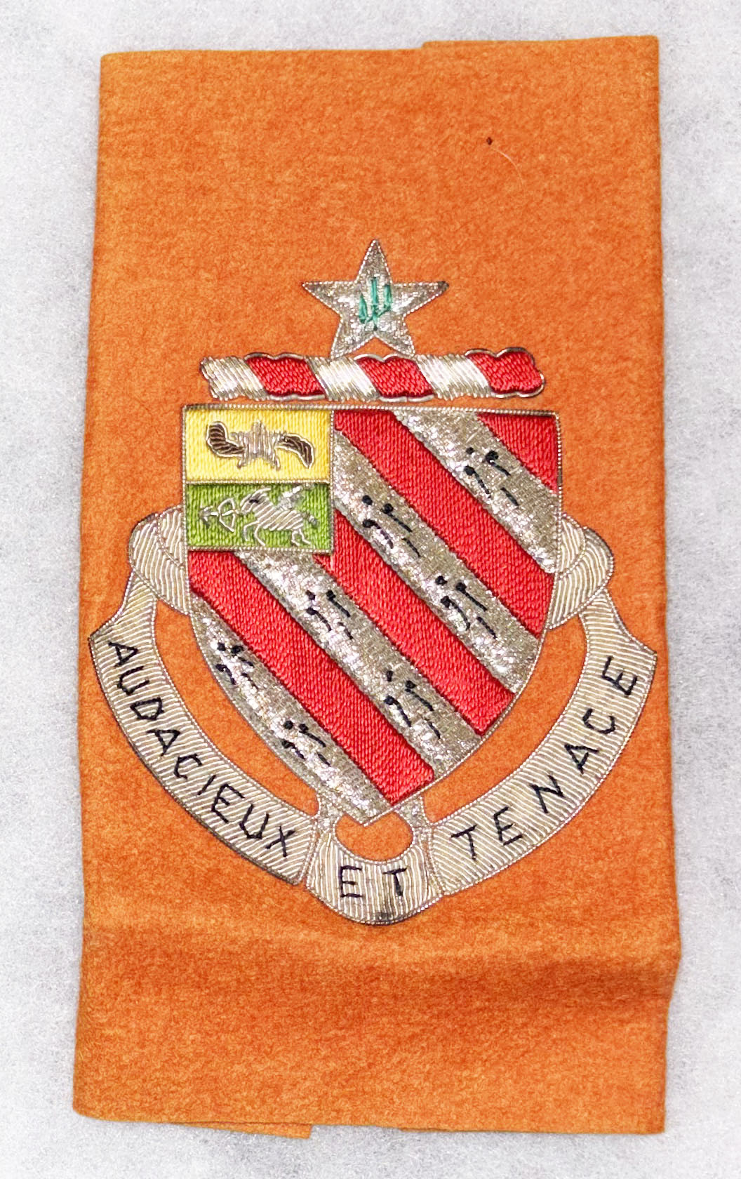 Korean War 8th Field Artillery Japanese Made Bullion Pocket Patch. Seven and a half inches tall. Orange wool background with super high quality Japanese bullion embroidery. Unused. The photos do not do this patch justice.