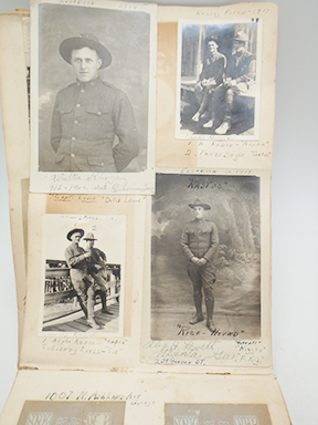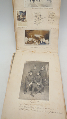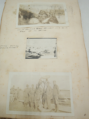 WWI era Army Air Service Photo Album of 644th Aero Squadron. Contains hundreds of photos of the members of the squadron from Kelly Field, Texas to their time in France. Lots of great portraits and aircraft images, including crashes. A lot of commentary written with the images as well. Album has quite a bit of wear of from age with some loose pages. Overall the album is intact.