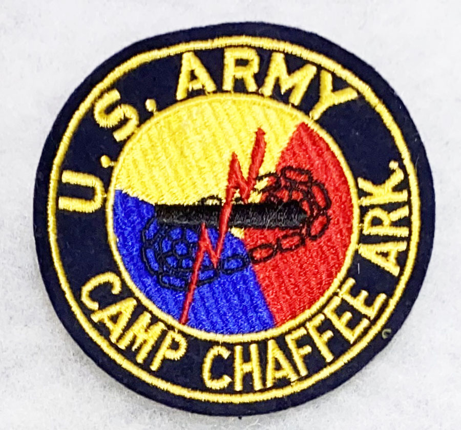 WWII US Army Camp Chafee Arkansas Armor Forces Patch. Four inches in diameter. Machine embroidered on felt. Unused.