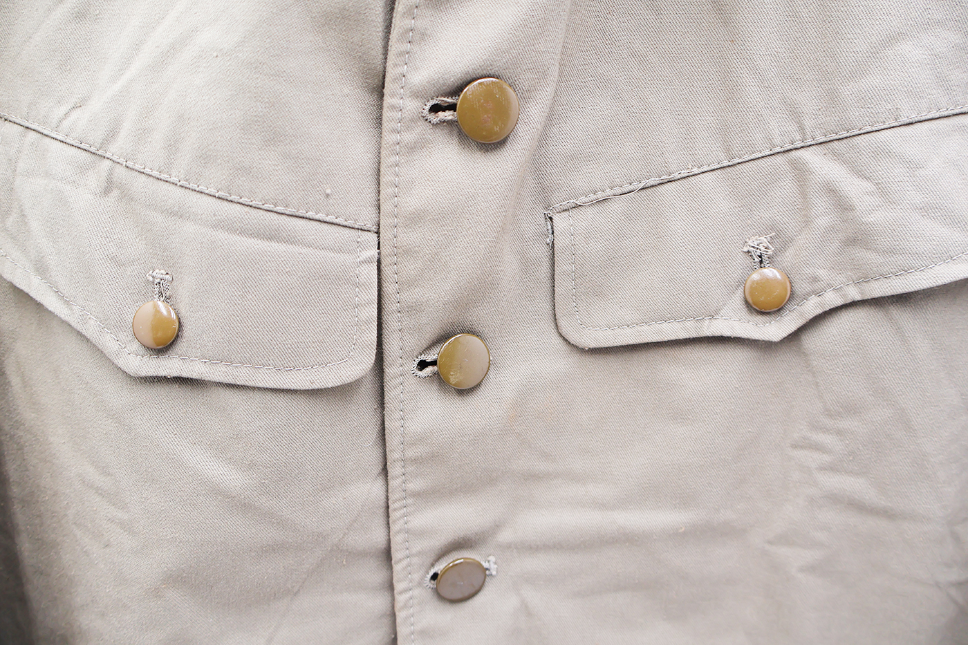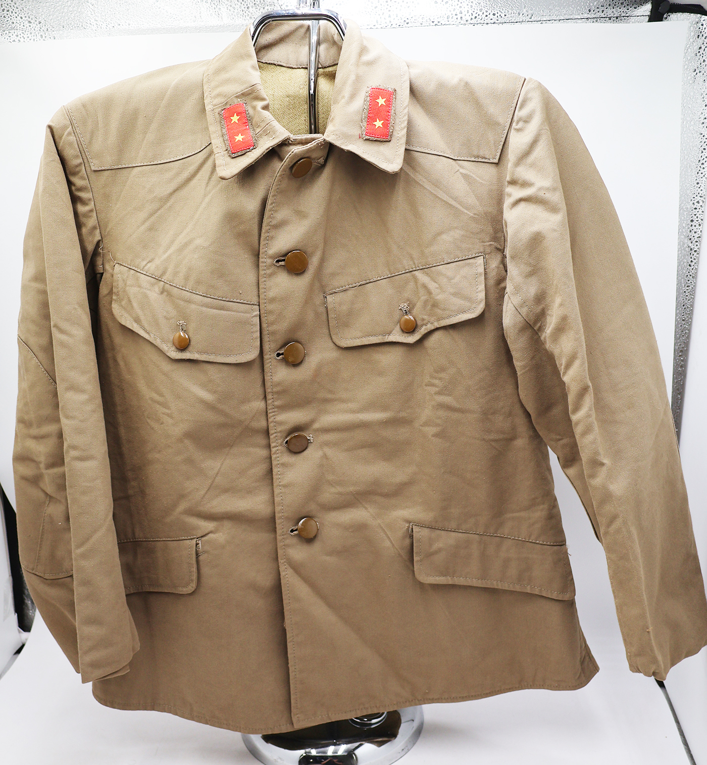 WWII era NOS PFC Type 98 Winter Work Tunic. Cotton body is in excellent condition with no notable wear or stains. Buttons are in great shape. Private First Class rank is in great condition. The tunic appears unworn. Would be hard to find in better condition. Small size.