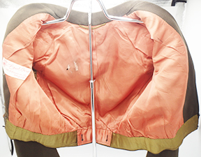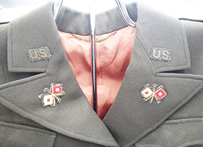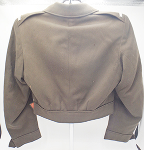 WWII era US Army Signal Corps Officer Ike Jacket occupation made. Wool body is clean with just some minor mothing. Wool and bullion insignia is very clean with no notable wear. The button on the left sleeve is cracked. Jacket is tailor made in Germany. Jacket measures shoulder to shoulder 16 inches, front chest size 17 inches, sleeve length 23 inches and top of the neck to the base of the jacket is 20 inches.