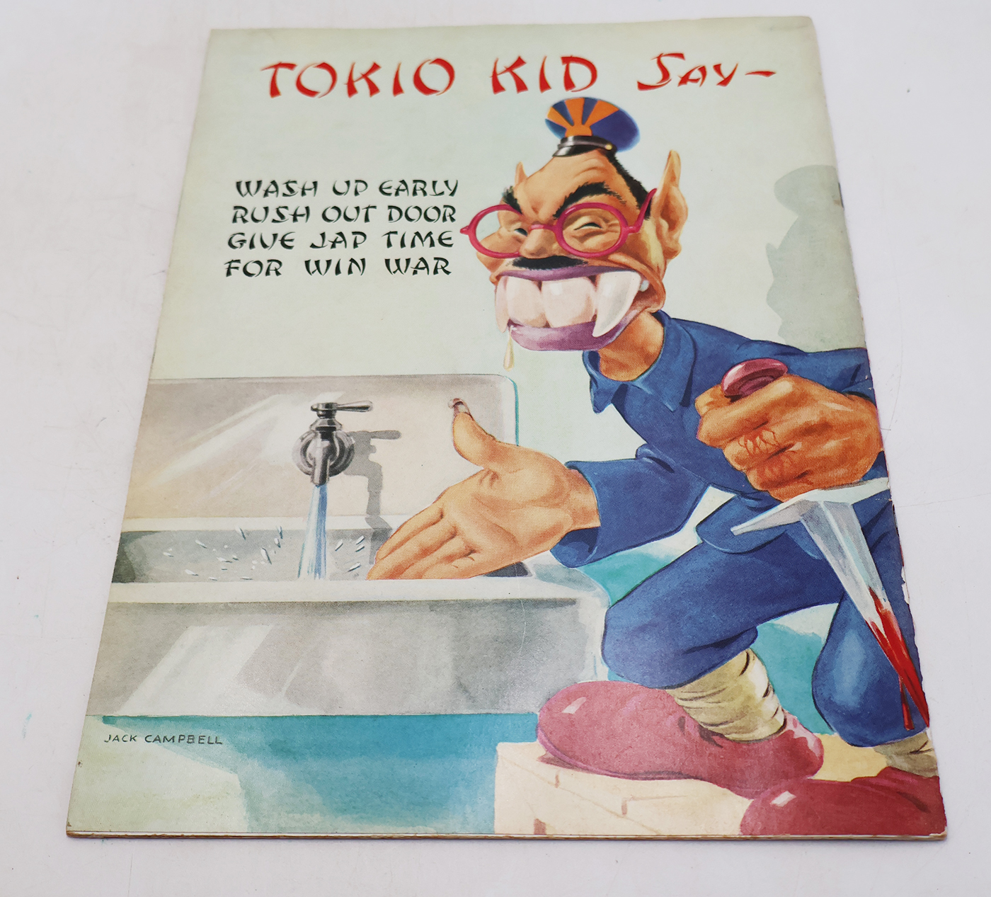 WWII Home Front Douglas Aircraft Company Airview Magazine Maquette Figure Head Of Tokio Kid. Plaster body that is about two inches tall and one inch wide. This is the classic model / maquette figure used by the Douglas artists when they were doing the magazine back covers and the posters. There is a slit at top and bottom where it could have been put on a stick to pose different angles. Rare piece on animation / home front Anti-Axis memorabilia. Shows minor scuffs from storage.