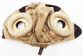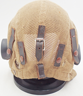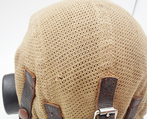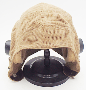 WWII British Type E RAF Summer Flight Helmet. Cotton/artex body with rubber ear cuffs for the headset. Cotton body is clean with just some minor wear from age. Rubber is supple, but has minor cracking. Metal hardware is in good condition Leather is in good shape. Small size. Cap looks hardly worn.