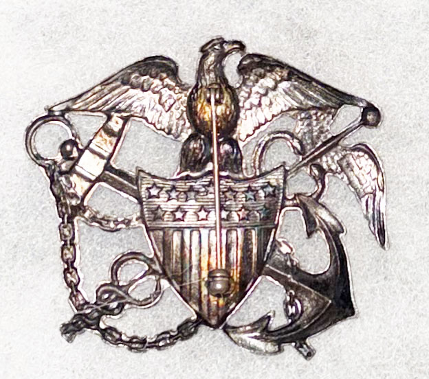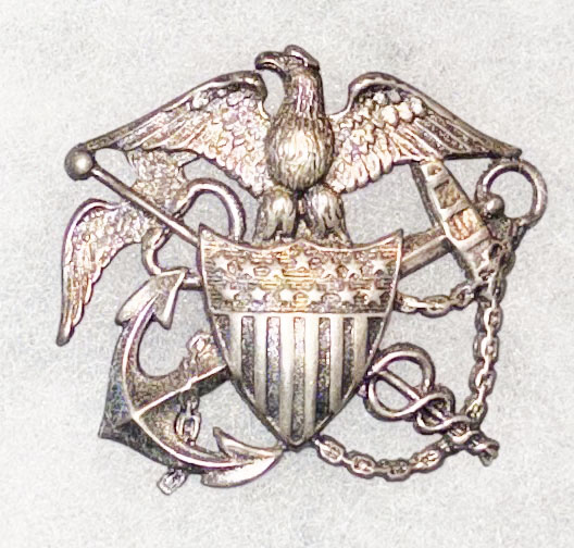 WWII US Public Health Service Enlisted Cap Badge. Two inches tall. Unmarked but appears sterling. Pin back.