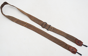 WWII German Breadbag Strap. Strap has some wear from age, but still has good integrity. Leather and metal parts are in good shape. Strap could still hold weight.