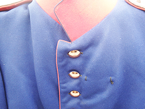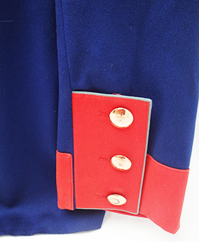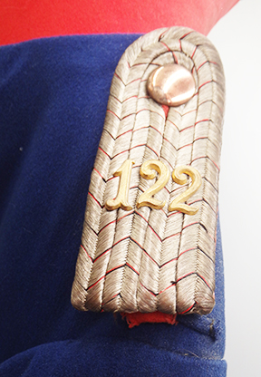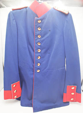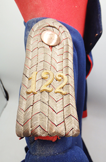 WWI Imperial German 122 Regiment Württemberg Tunic. Blue and red wool body is clean and in very good condition with no notable wear. Some small marks where insignia was. Shoulder Boards are in great shape. Coat measures shoulder to shoulder 14 inches, front chest size 16 inches, sleeve length 24 inches and top of the neck to the base of the jacket is 33 inches. No name could be located. Would be hard to find in better condition.