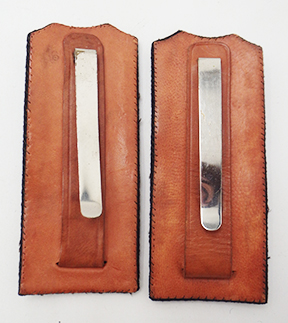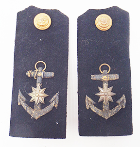 WWII Imperial Japanese Marchant Marine Shoulder Boards. About four inches tall. Black wool body with a gold bullion anchor on each. The back is leather covered, with a single metal band. Very good, clean, condition with some wear from age.