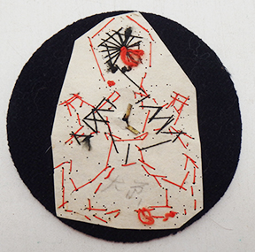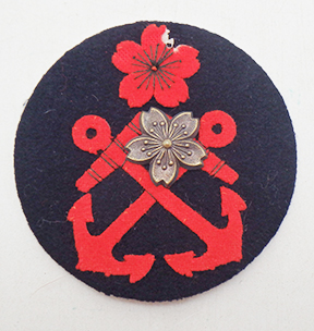 WWII Japanese Navy Leading Seaman 1st Class Rate. Dark wool background with red sewn wool details. Unused. Minor wear from age. Pin is in very good condition.