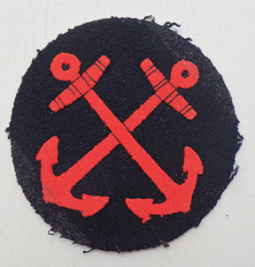 WWII Japanese Navy Leading Seaman 2nd Class Rate. Dark wool background with red sewn wool details. Appears to have been removed from uniform. Minor wear from age.