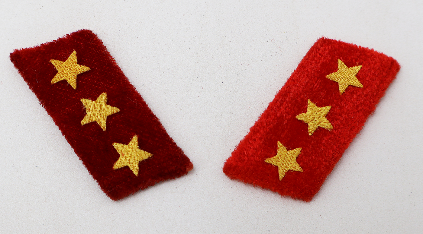 WWII Japanese Army Superior Private Enlisted Collar Tab Set. In good condition with no notable wear or staining. Velvet material with stiff backing. Each tab is about a inch and three-quarters long.