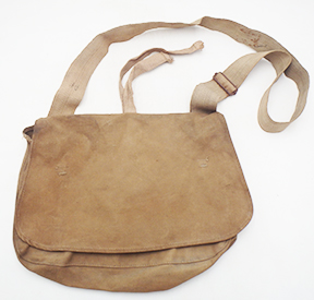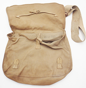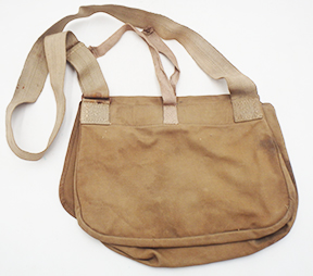 WWII Japanese Model 1944 Breadbag. Cotton/canvas body is in good condition with some wear from usage. All of the ties are in good condition. Metal buckle has surface rust. Bag has good integrity and is still very useable.