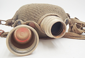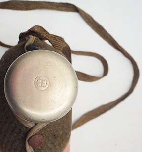 WWII Japanese Army Officers Private purchase Canteen. Aluminum body with wool cover and canvas strap. Has some wear from age, but looks hardly used. Some surface rust on the metal parts. Overall in good condition.