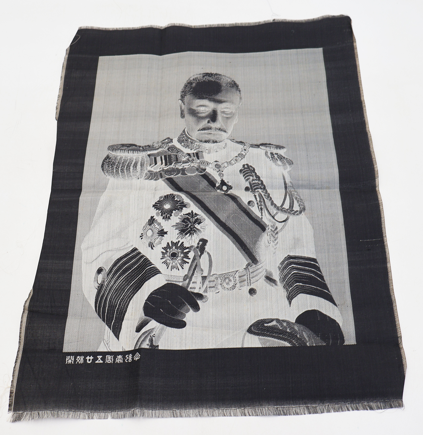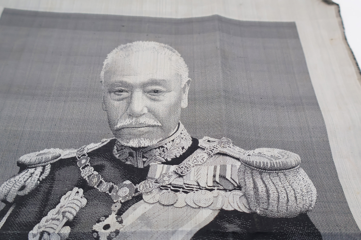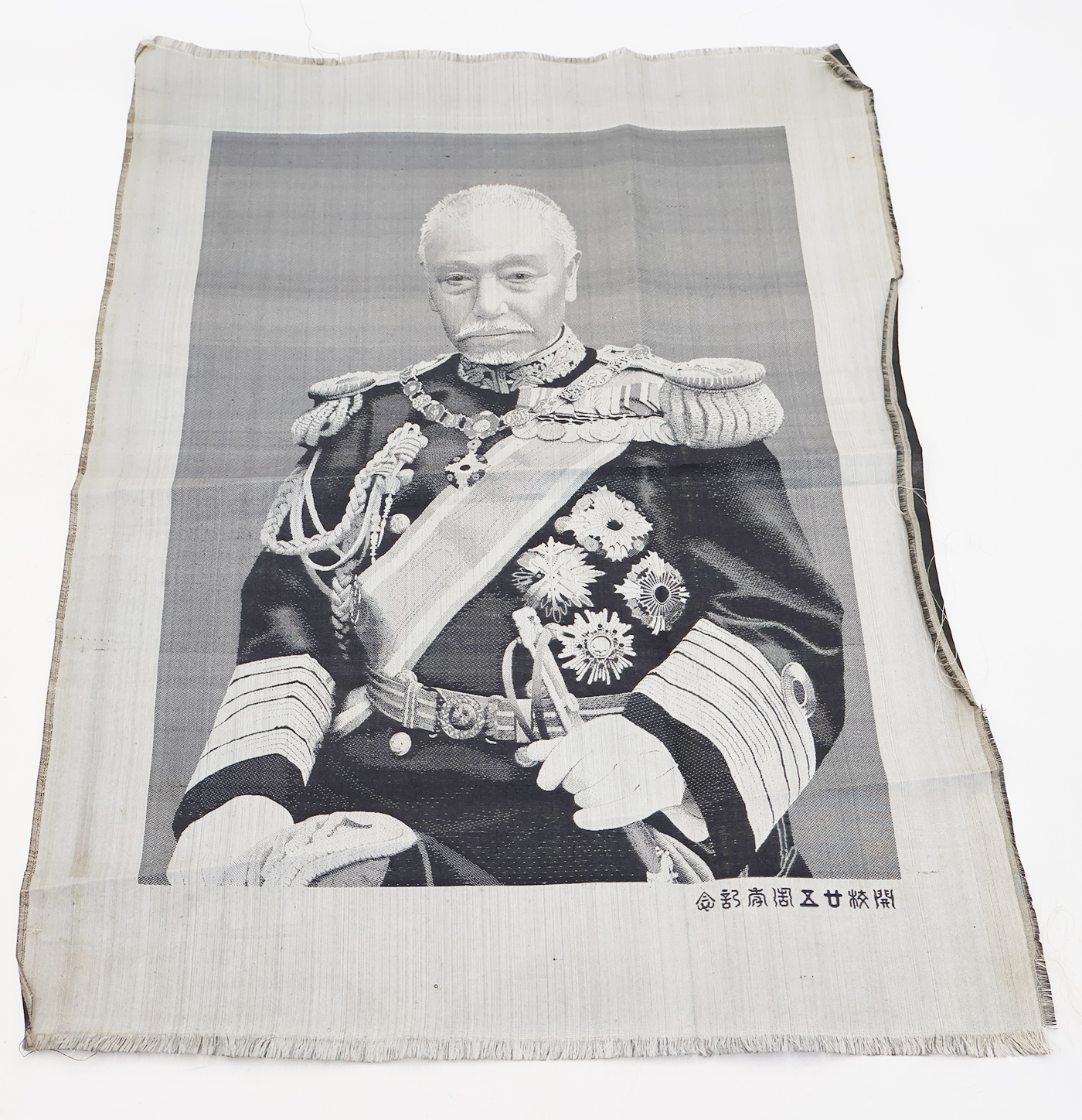 Admiral Togo Patriotic Silk Tapestry. Silk is in great shape with a very clean image of Admiral Nogi. Wrinkled from storage. Measures 13 x 18 inches.