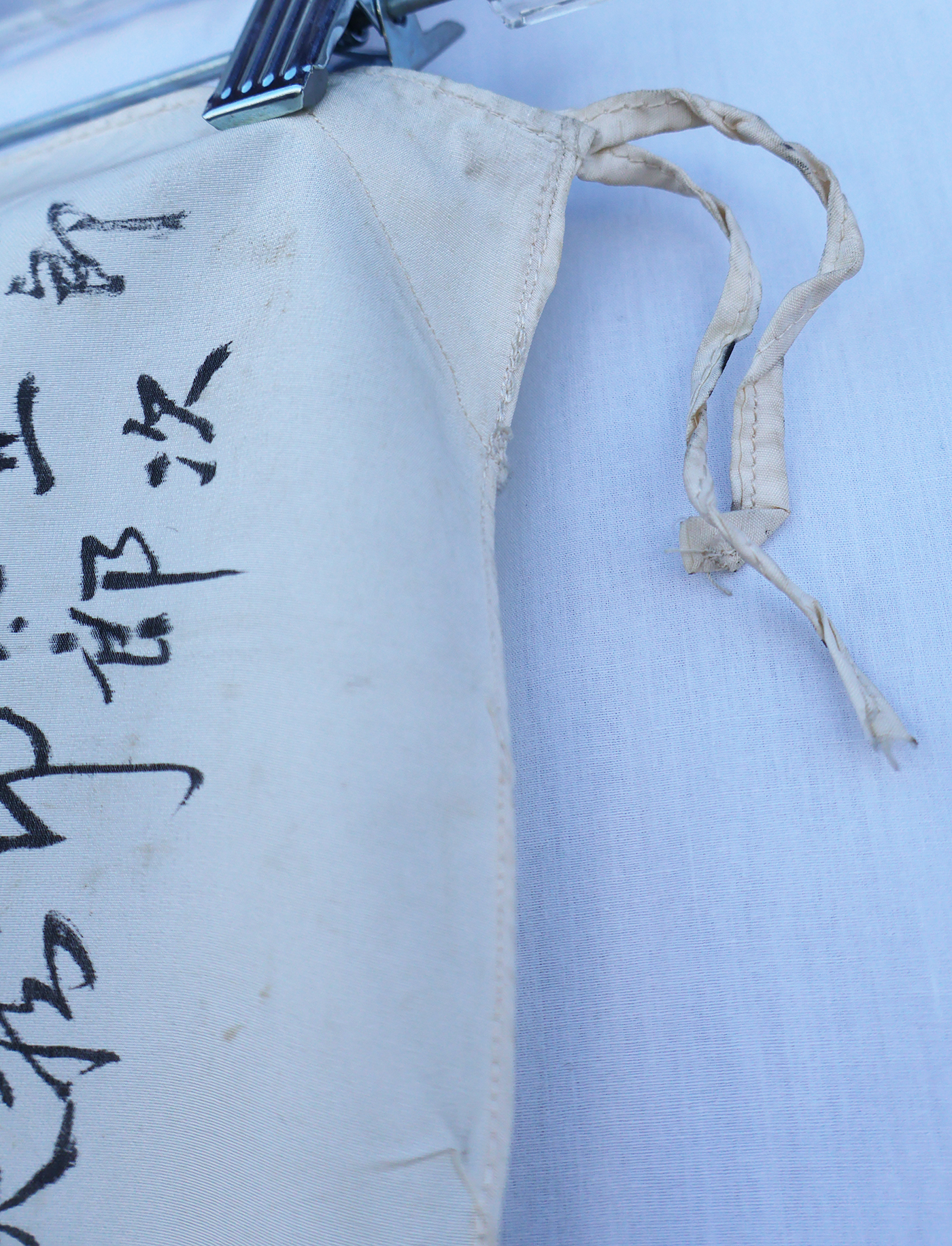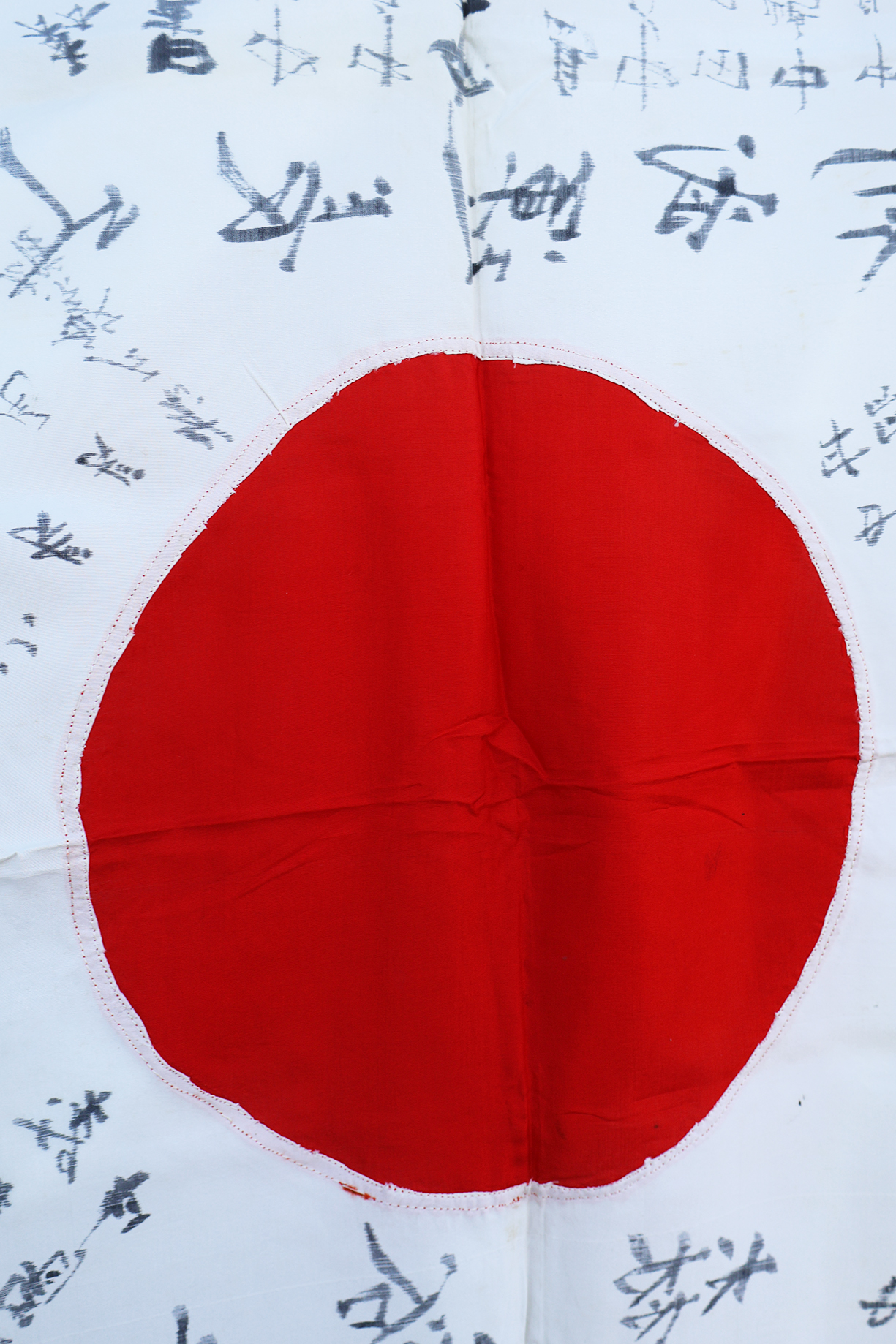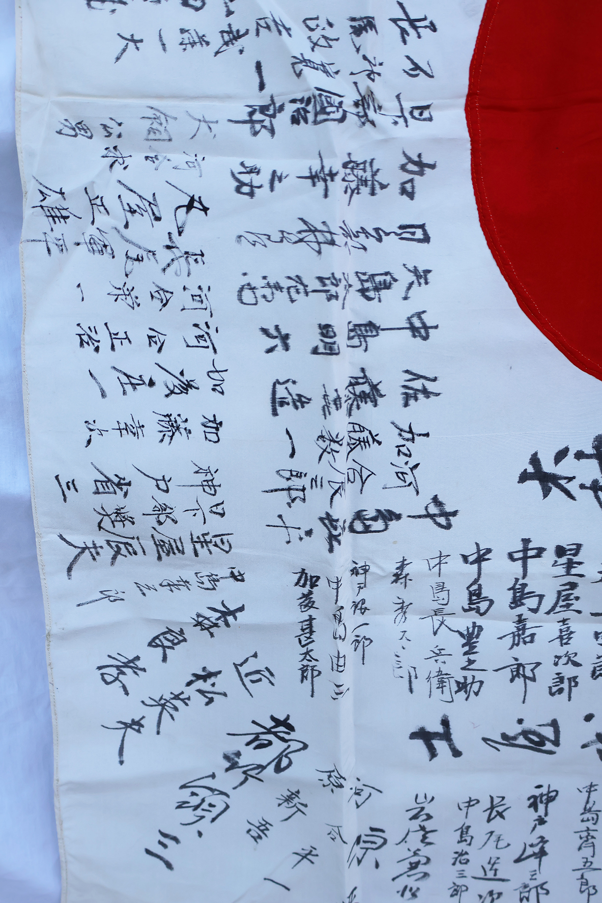 WWII Japanese Identified Mr Yu Moriv Good Luck For Bravery Flag. Named to a Mr Yu Mori. Ties are in good shape. Silk body is clean and in good condition. Measures about 28 x 37 inches. The majority of the writing is just signatures. Has been folded.