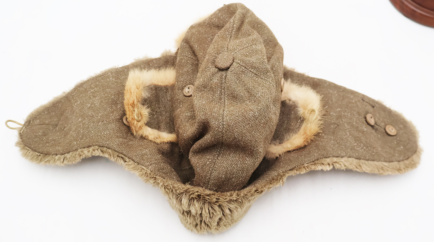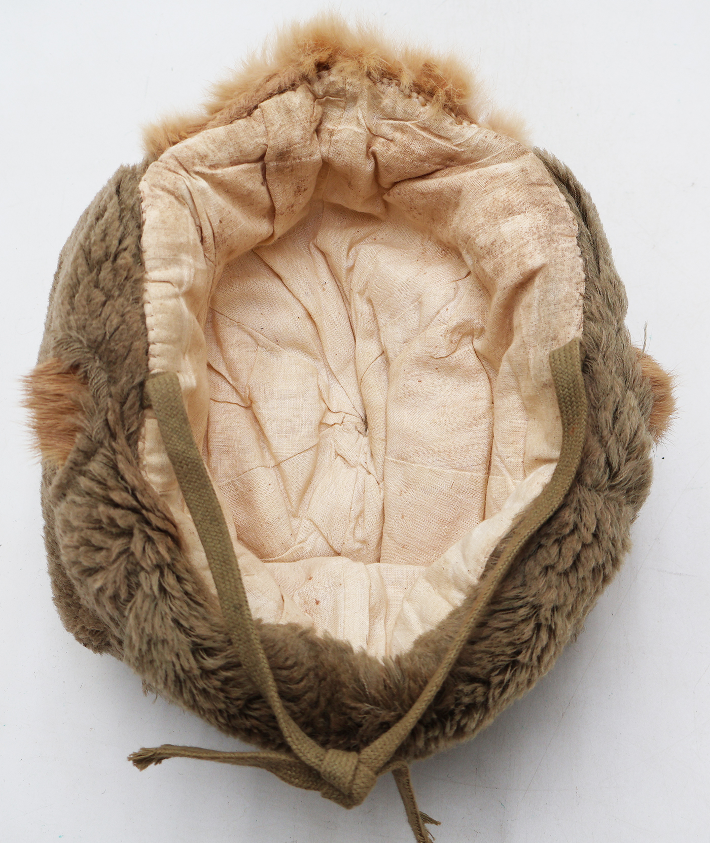 WWII era Japanese NOS Army Winter Fur Cap. Wool body is in excellent condition with no notable stains or wear. Fur is in great shape. Lining has some minor discoloration. Cap looks hardly, if ever, worn. Wool star on the front is in great shape. Buttons are intact and in great shape. Would be hard to find in better condition.
