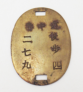 WWII Japanese 4th Infantry Regiment #297 Dog Tag. Brass background with stamped details. Some wear from age, but overall clean and in good condition. No damage to the tag. The 4th was part of the 2nd Division, which fought a the battle of Guadalcanal.