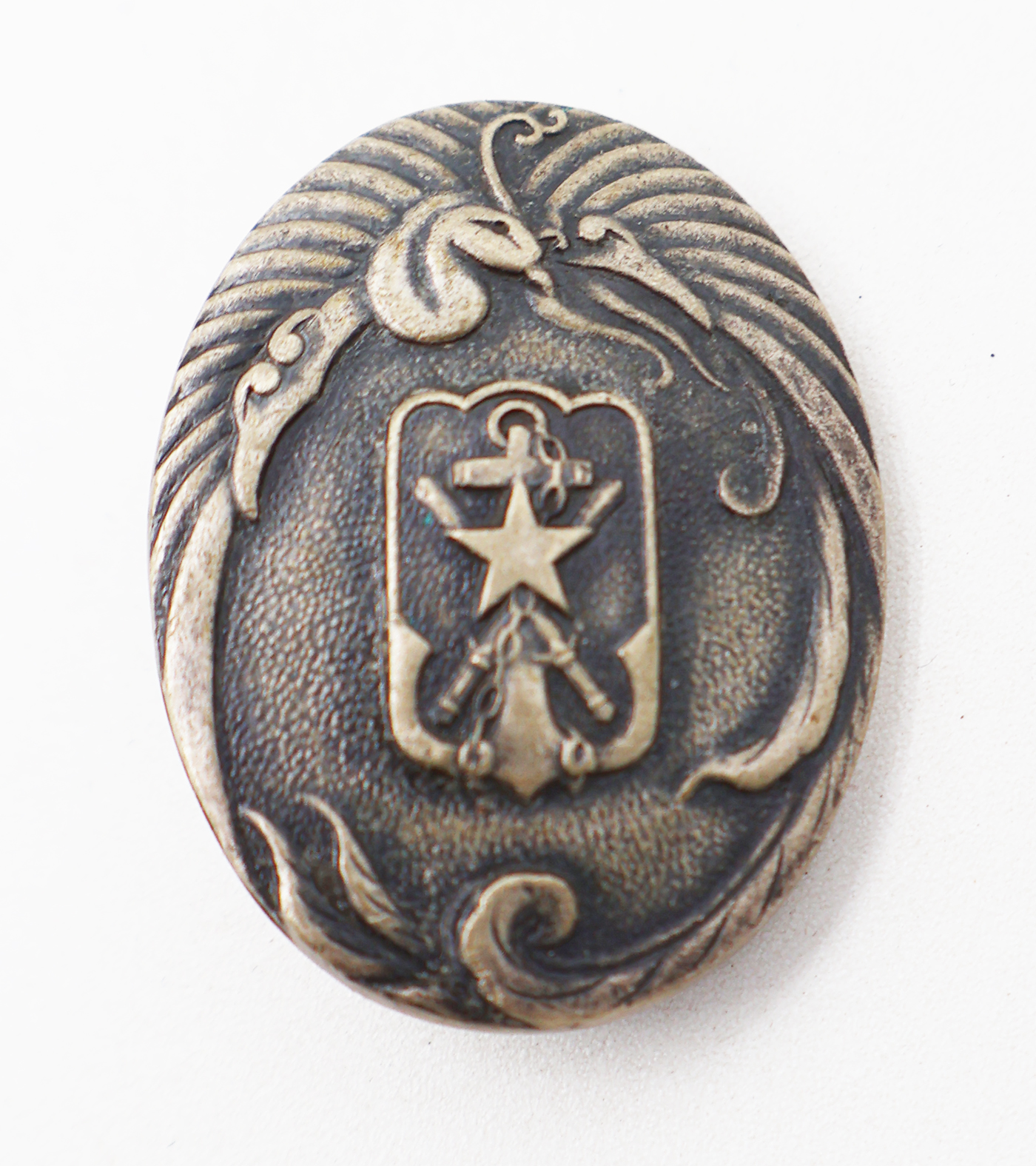 WWII Japanese Time Expired Soldiers League Meritorious Service Badge. Aluminum body is worn and the pinback is broken off. About 1 inch tall. Face is in good condition.