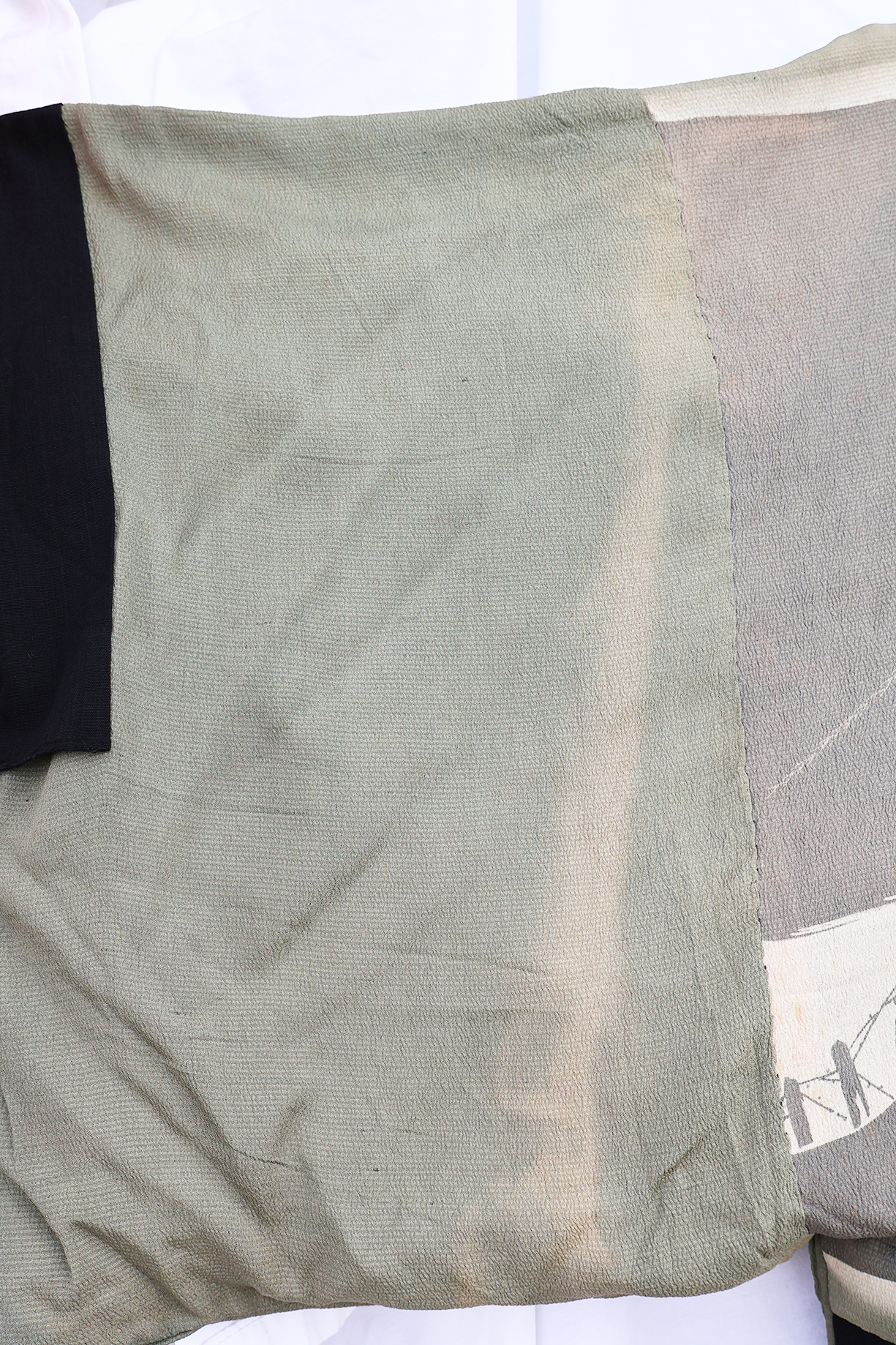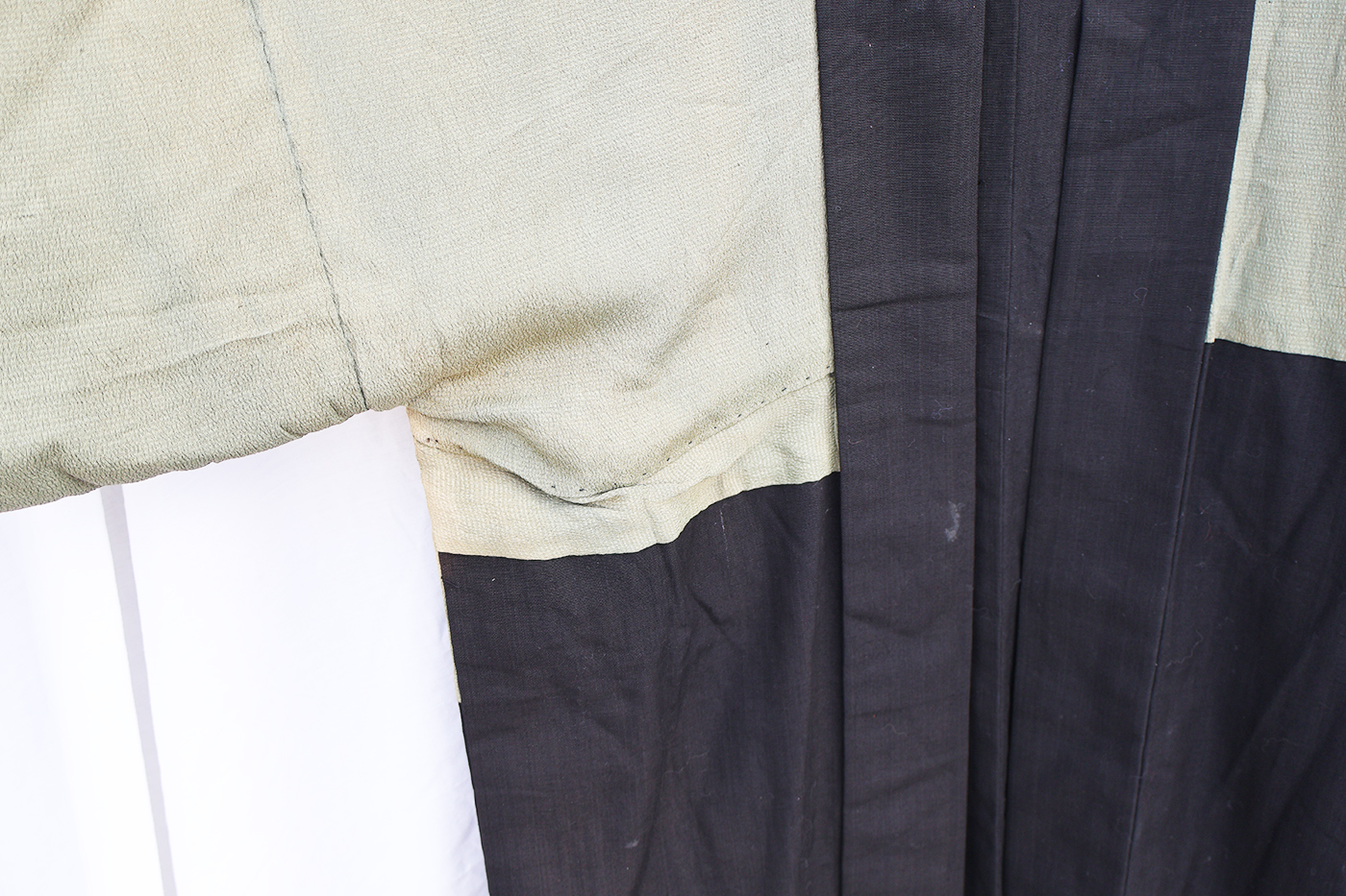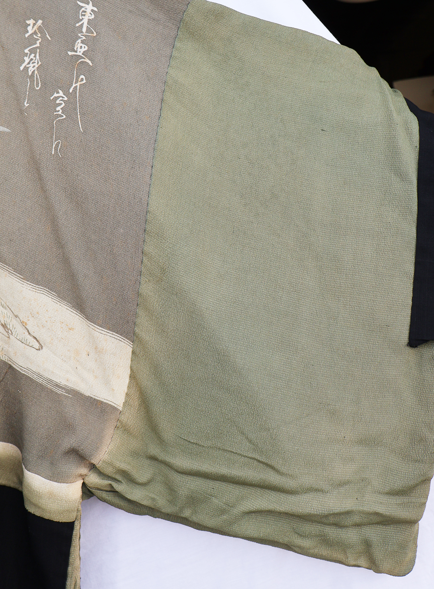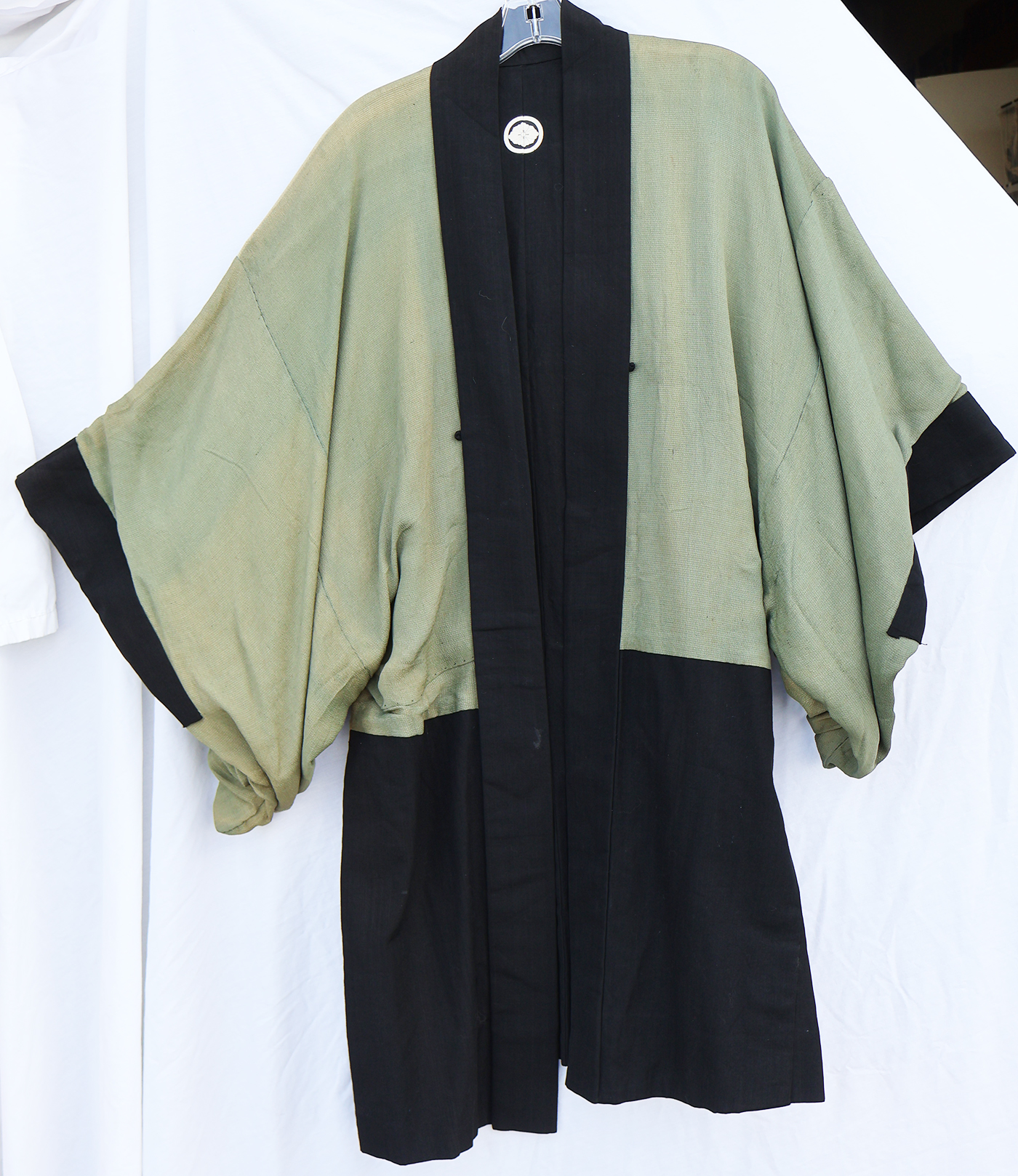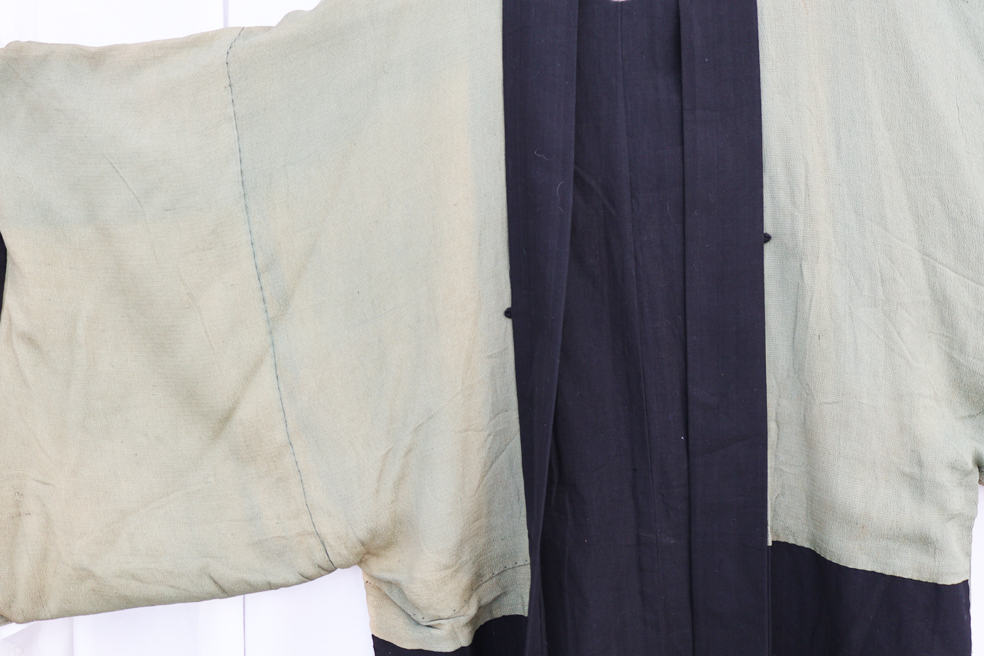 Early WWII Japan Homefront Aviation War Theme Kimono. Adult size, measuring roughly 18 inches at the chest. Silk body is in good condition with some fading from age. The image on the back is of a MG team and aircraft flying in front of the Rising Sun. Image is in great shape. Interior is in very good condition.