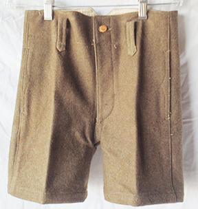 WWII Imperial Japanese NOS Kids Shorts. Brown wool body. Two slash pockets. About a size 24 inch waist. In perfect condition with no wear of any kind.