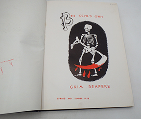 Korean War era 13th Bomb Squadron Devil's Own Grim Reapers Unit History. The book cover and pages are worn with age, but the binding is strong. The book is 1955 dated. First Edition. The book contains approx. 156 pages.