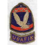 Late-1940's-50's 92nd Division Theatre Made Patch. Ribbed cotton like background. Has a velvet sewn buffalo in the center. Appears Korean made. Used.