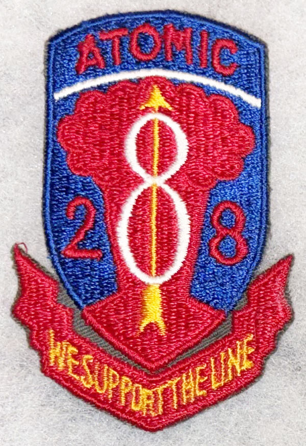 1950's-60's 2nd Battalion 28th Field Artillery ATOMIC German Made Patch. Four inches tall. German machine embroidered. Unused.