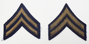 Korean War era 1951 Pattern Corporal Rank Chevrons. Dark blue Twill construction. Chevrons are in very good condition and appear unused.