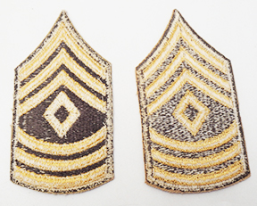 Korean War era Women's Taupe First Sergeant Rank Chevrons. Cotton construction. Chevrons are in very good condition and appear unused.