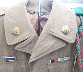 Korean War era 2nd Infantry Division Bullion Ike Jacket. Standard wool enlisted Ike. On the left shoulder is a 7th Armored Division patch. On the right shoulder is a 2nd Infantry Division Bullion patch that is Japanese made. The patch has some wear, but overall in good condition. Sized 36S. Has some minor stains and mothing. Overall in good, clean condition.