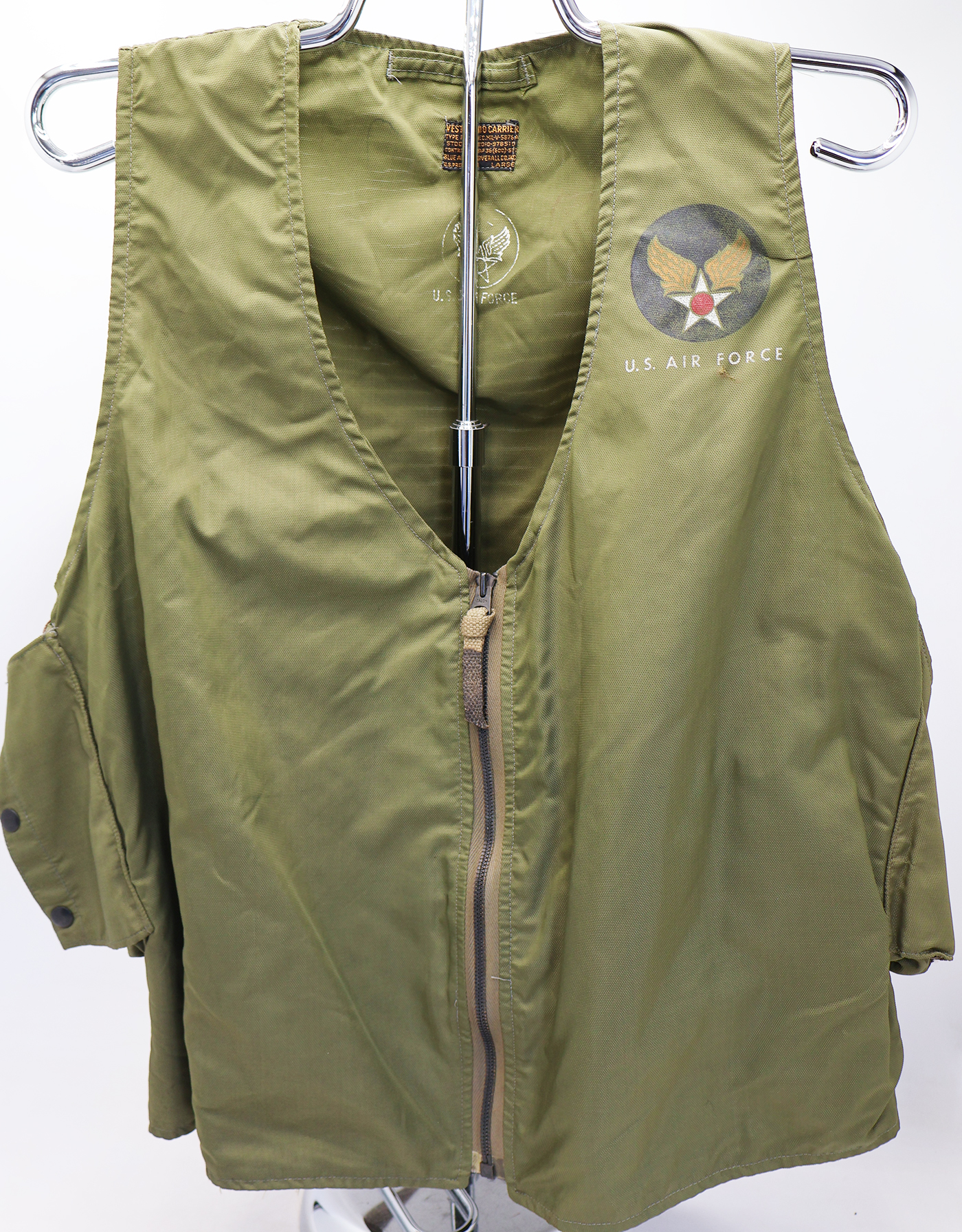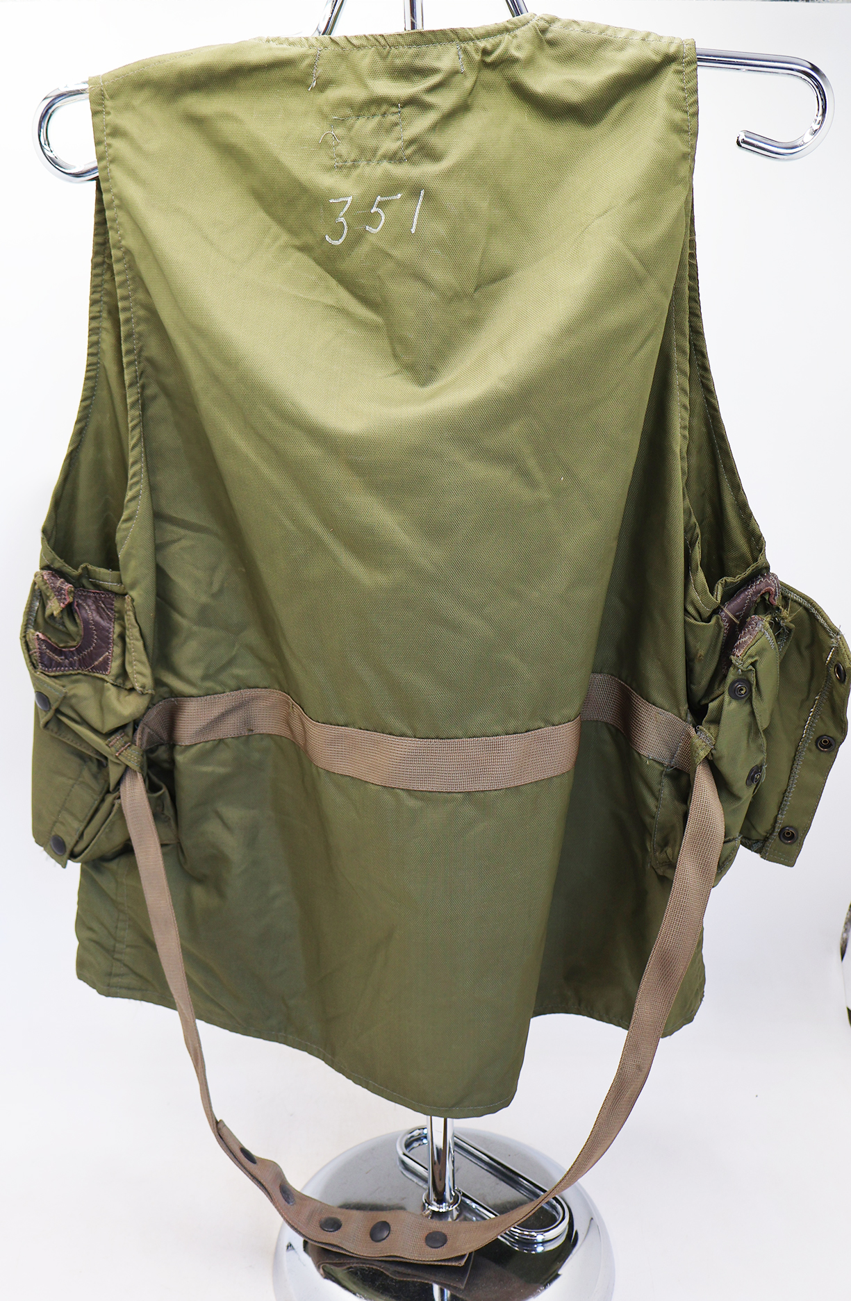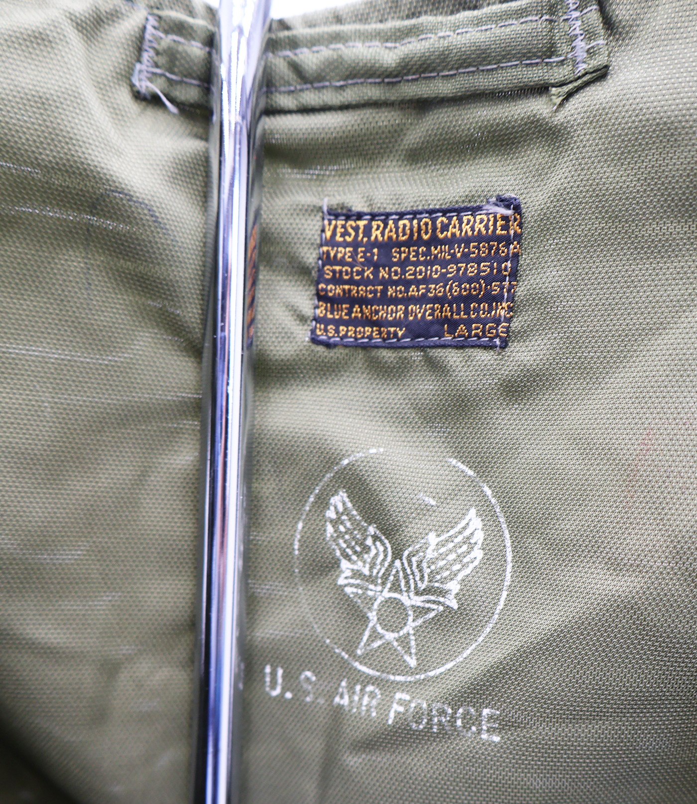 Korean War era US Air Force E-1 Radio Vest. Vest is in very good condition with no notable wear or staining to the material metal hardware is in good condition. All of the straps are in very good condition. Labelled a size large.