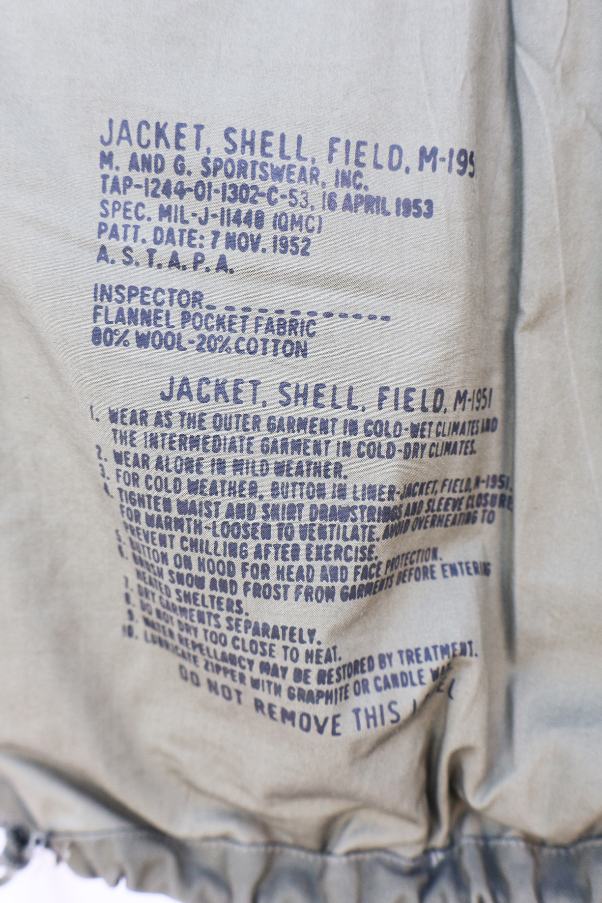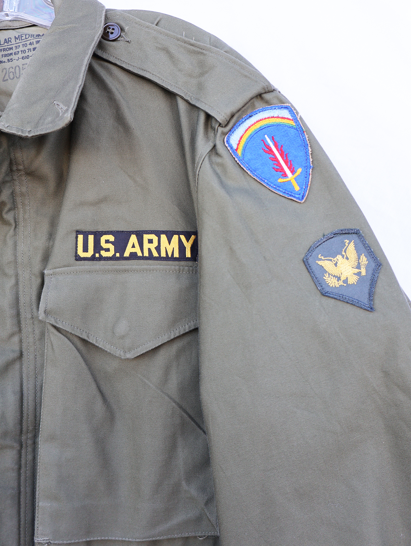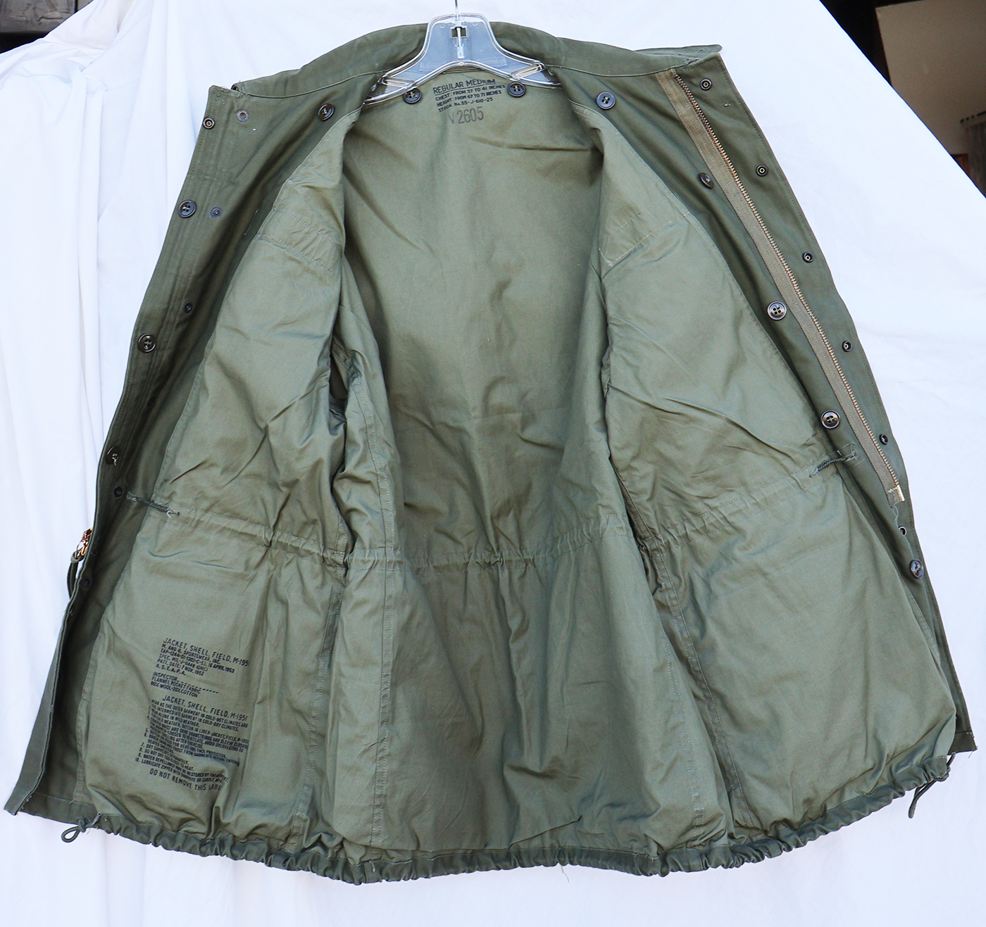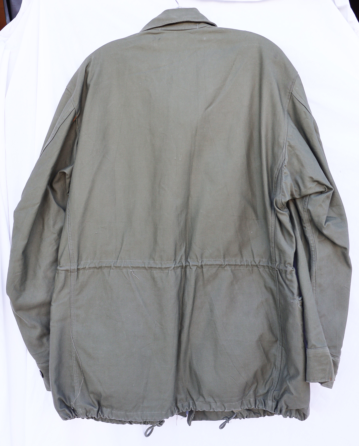 Korean War era US Army US Army Europe M-51 Field Jacket. Standard issue Poplin M-51 field jacket. Labelled size Medium - Regular. On the left sleeve is a US Army Europe patch. On the left chest is a US Army Tape and a name tape on the right chest.  Jacket is in excellent condition and looks like it was worn once or twice.