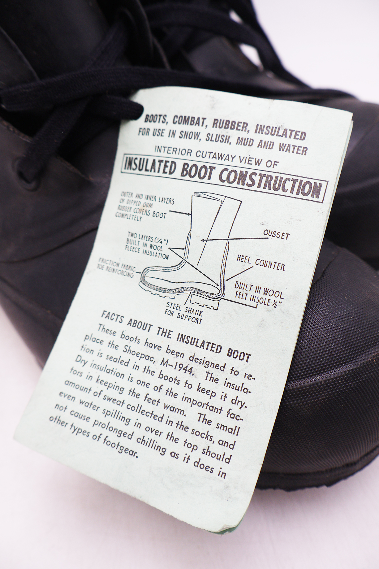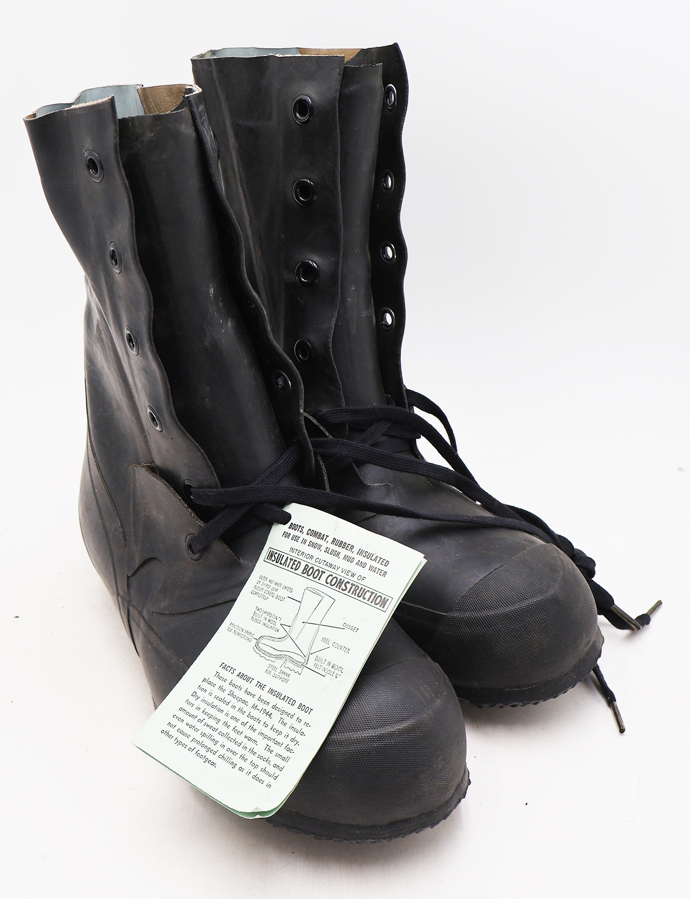 1950's US Army Rubber Insulated Boots. With the tag and are unissued. The rubber is worn with some minor cracking, but is still supple. They are size 7N.