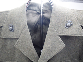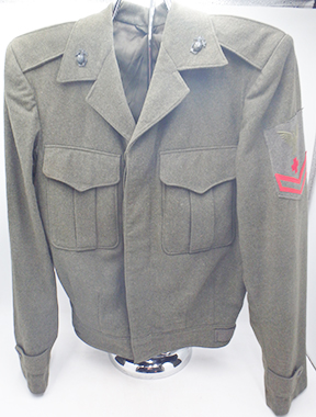 Korean War Era USMC Corpsman Ike Jacket. Wool jacket is in good condition with no notable mothing or wear. Insignia is in very good condition. Named inside the jacket (see photos). Measures 16 inches shoulder to shoulder, 18 inches across the chest, 24 inch sleeve length and 27 inches from the top of the jacket to the base.