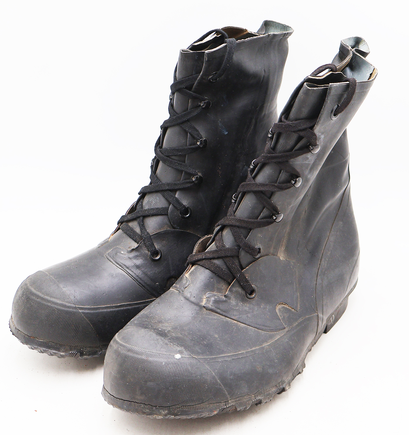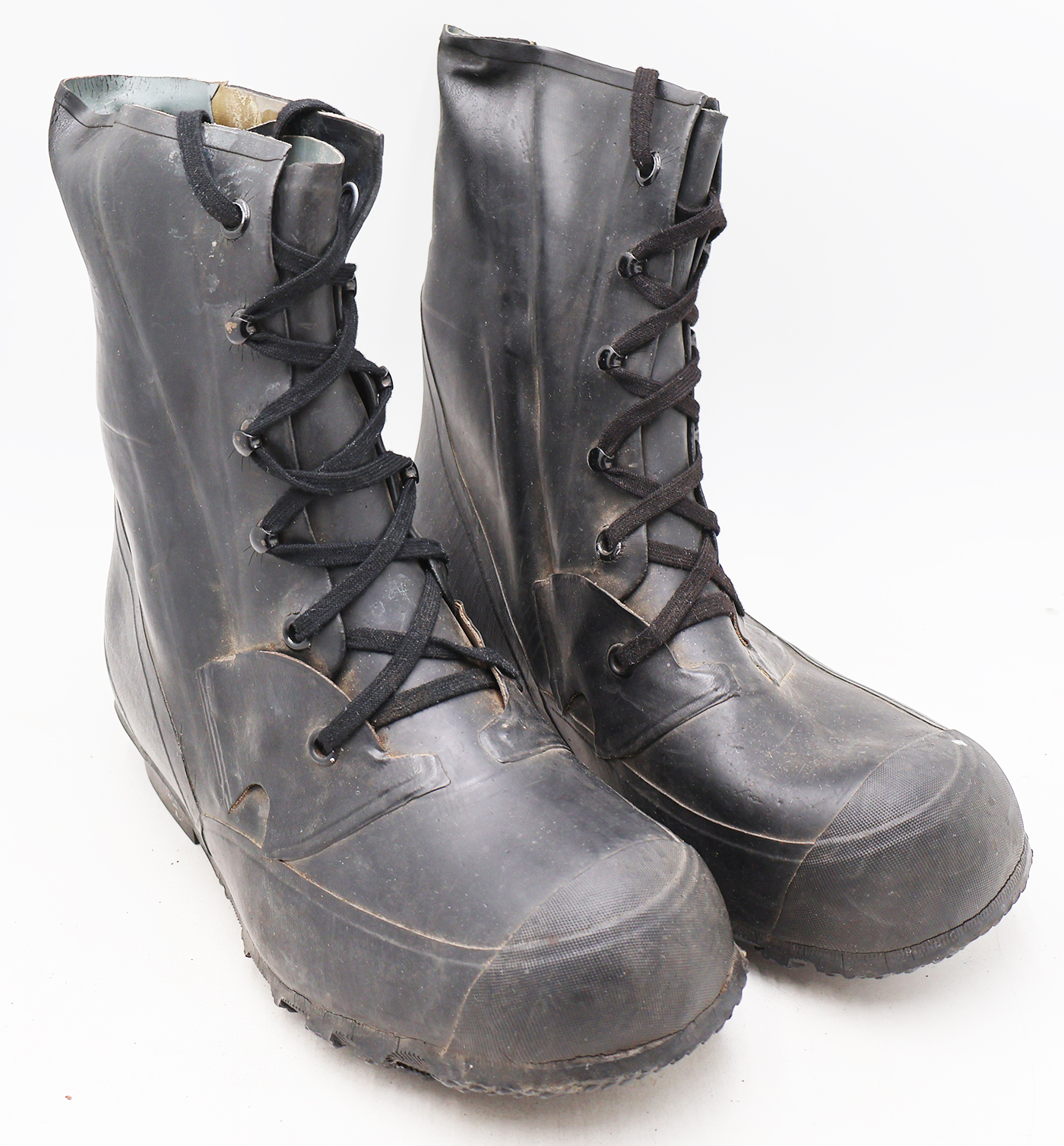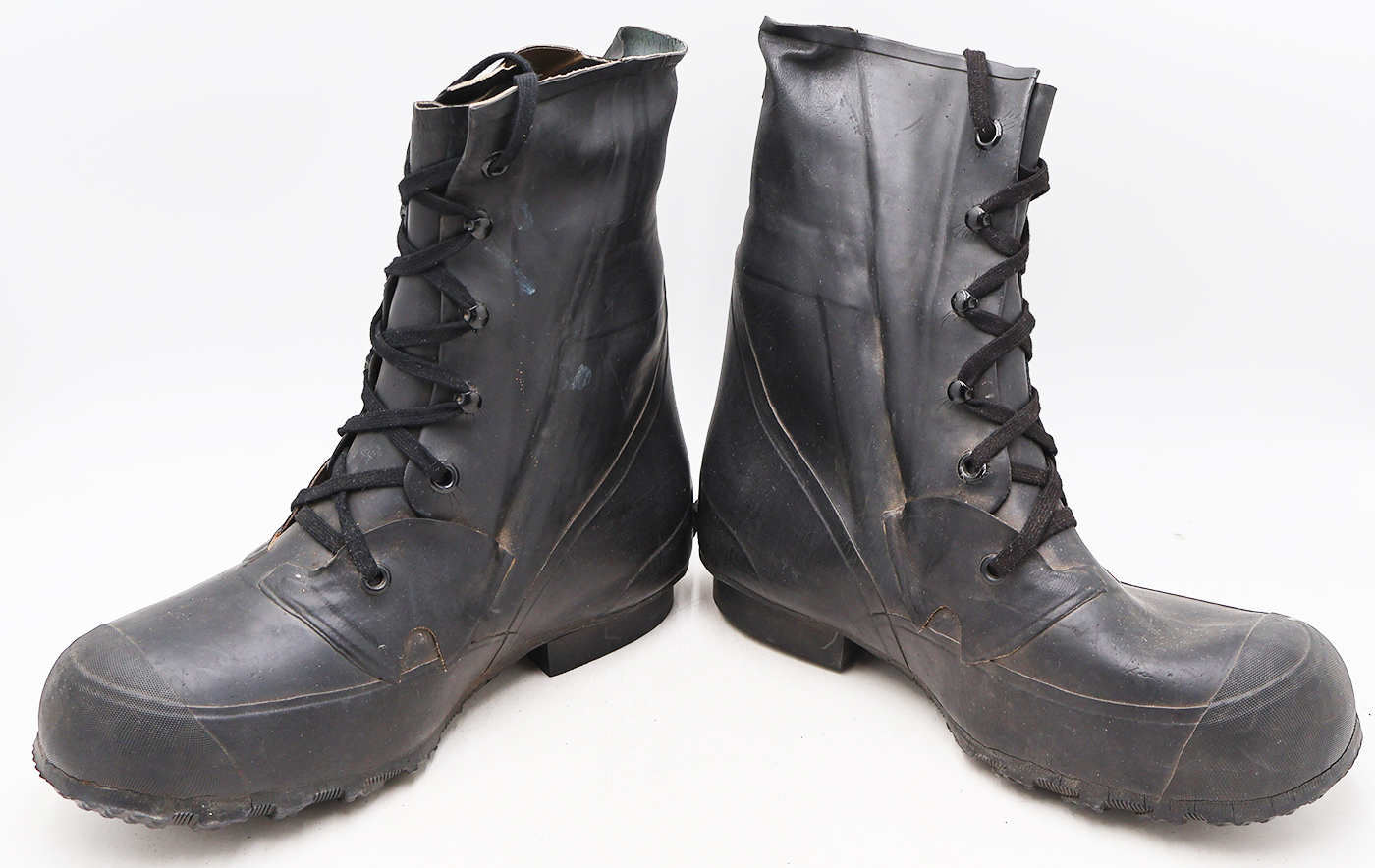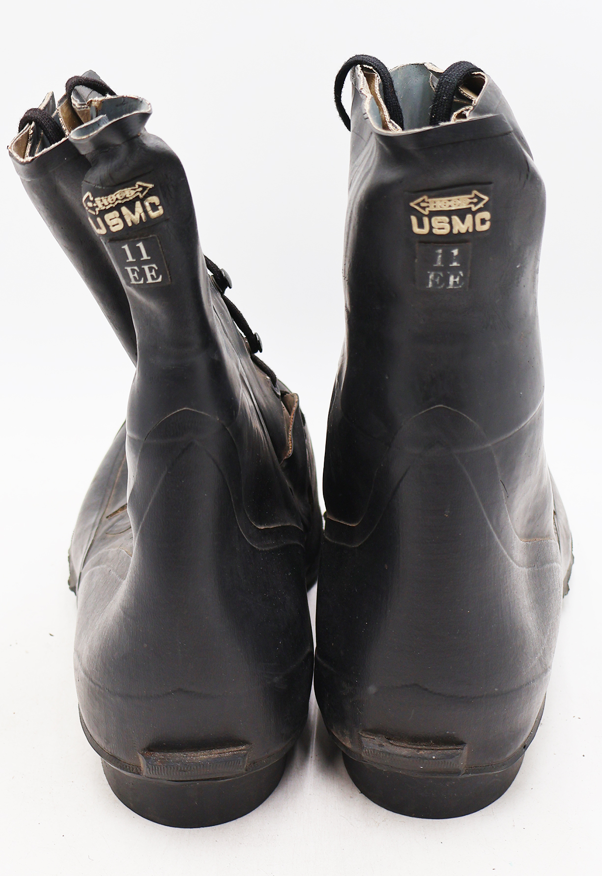 1950's USMC Rubber Insulated Boots. Dusty from storage. The rubber is worn with some minor cracking, but is still supple. They are size 11EE.