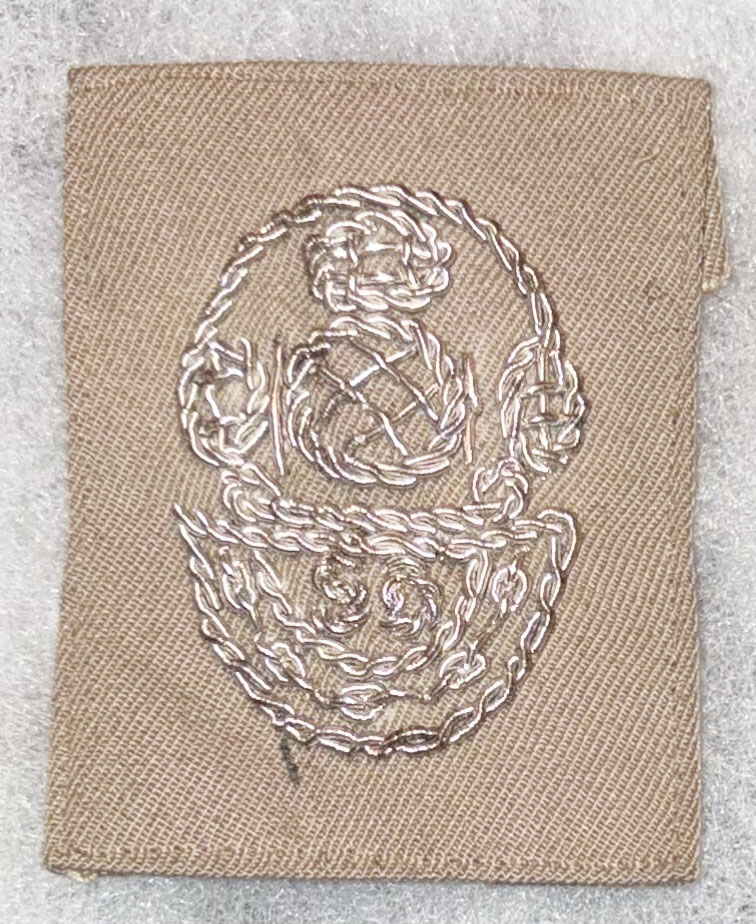 WWII - 1950's US Navy Bullion Salvage Diver Qualification Patch. Two and a half inches tall. Khaki twill background with silver bullion embroidered details. Unused.