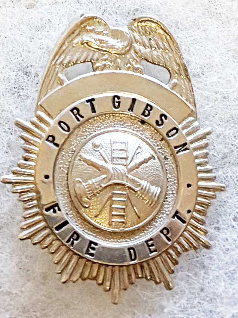 Port Gibson Mississippi Fire Department Badge. About two and a quarter inches tall. No hallmarks. Pin back.