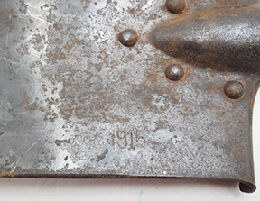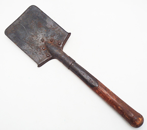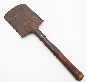 WWI Imperial Russian Entrenching Tool. E-tool is worn from usage and age. Some surface rust with some of the paint is intact. Still very solid and usable. 1915 dated.
