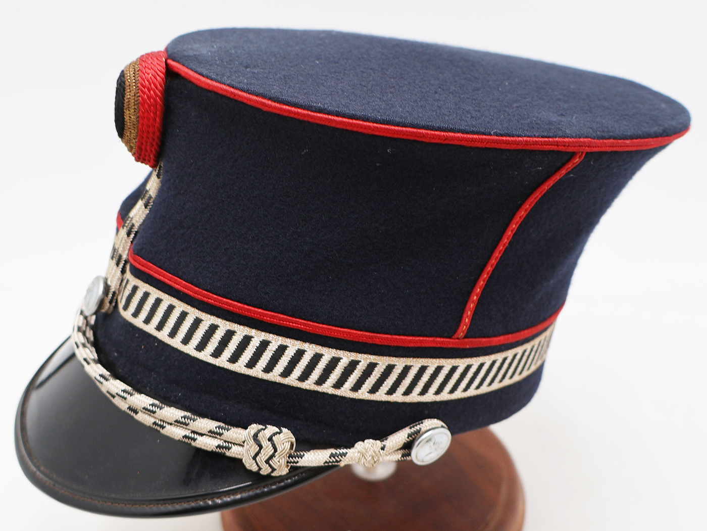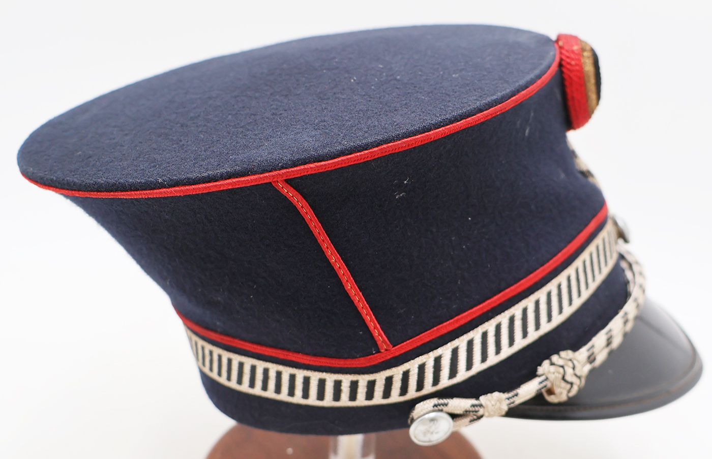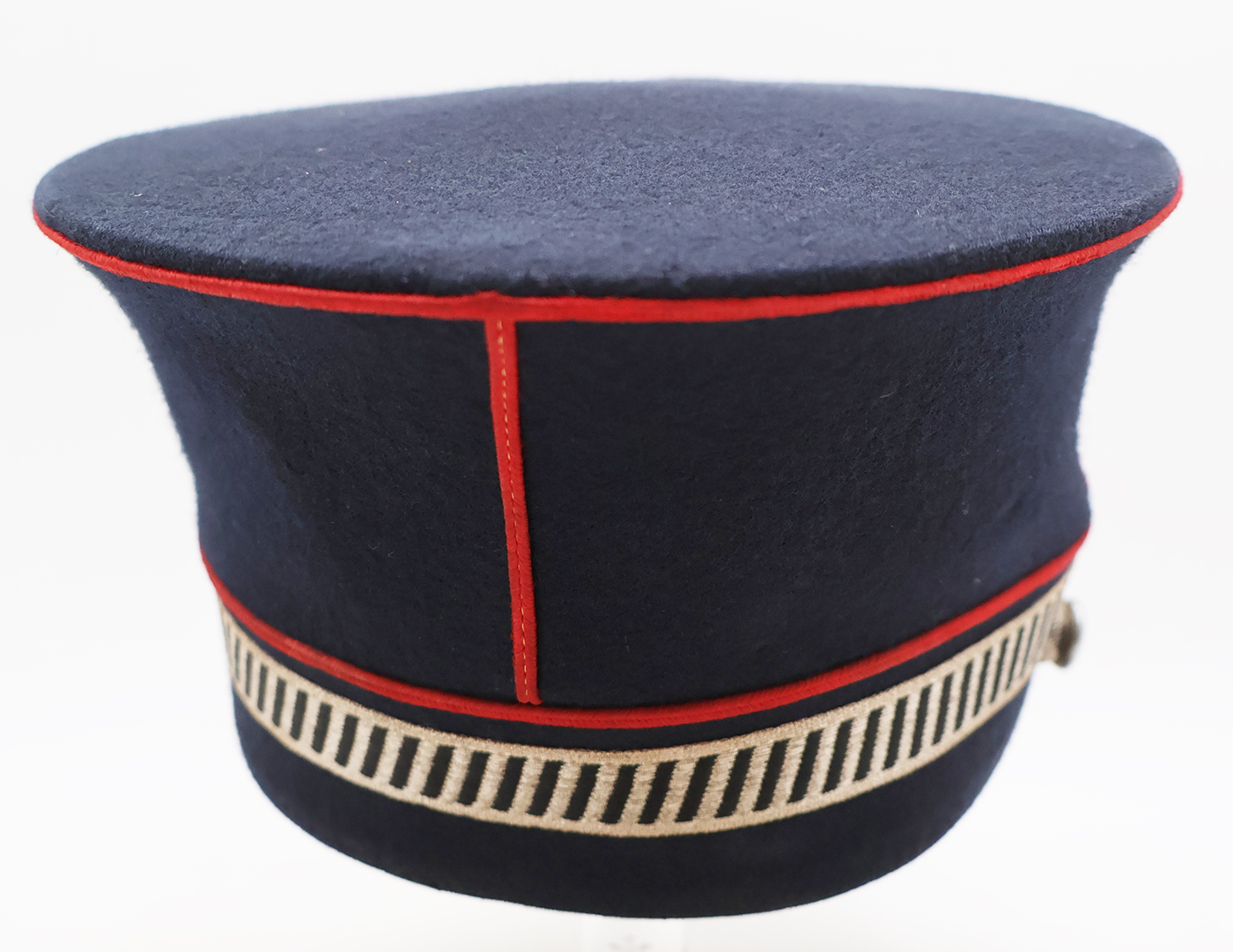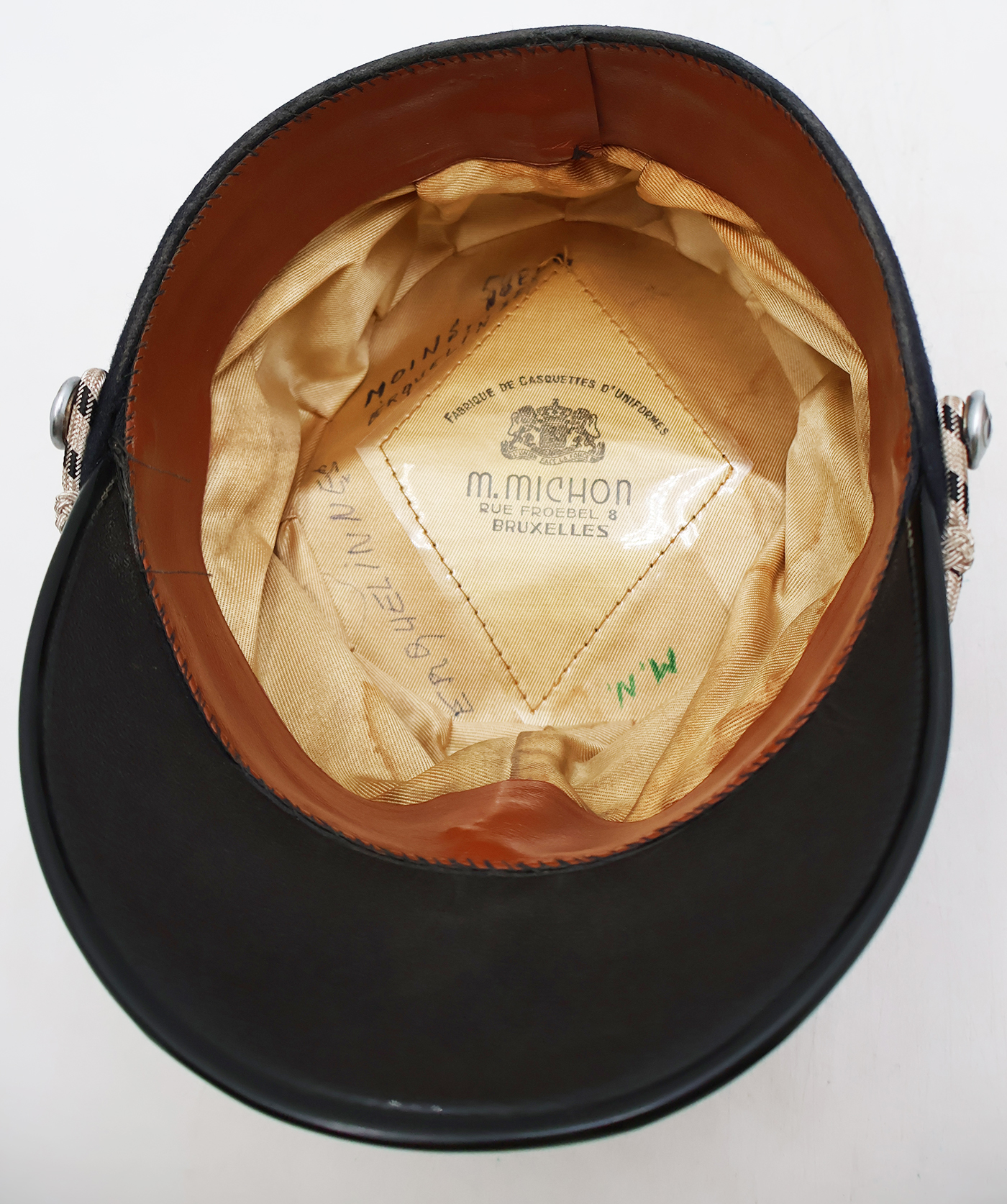 Cold War era Belgian Gendarmerie Pontus Police Kepi. Has good form and is in good condition. Bullion is clean and wool is in good shape. Leather sweatband and lining has some wear, but is intact.
