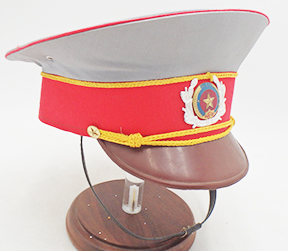 Recent issue Peoples Army of Vietnam Officer Visor Cap. Cap is clean and appears to be hardly, if ever, worn. Small size, labelled size 59. The interior is in very good condition. Insignia is intact and super clean. The leather bill is in great shape.